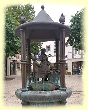 Rechts neben dem Rathaus plätschert ein Brunnen vor sich hin. Dass hier einmal reges Markttreiben herrschte, daran erinnert seit 2003 ein von dem Aachener Künstler Bonifatius Stirnberg geschaffener neuer Marktbrunnen.