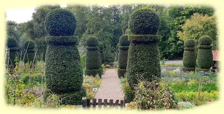 Mit einem letzten Blick in den Garten endet für heute auch unser Besuch im Freilichtmuseum Detmold. Es war eine interessante Begegnung mit der bäuerlichen Kultur unserer Vorfahren und seit unserem letzten Besuch vor 26 Jahren sind so einige besondere und geschichtlich bedeutende Schmuckstücke hinzugekommen. Aufgrund der Vielzahl an Gebäuden haben wir an diesem Tag nicht alles anschauen können, denn das Gelände ist riesig. Es lohnt sich also, auch ein drittes Mal wiederzukommen. Am Ende unseres Rundgangs haben wir sicherlich mehrere Tausend Schritte getan. Müde und durstig kehren wir am frühen Abend zu unserem PKW zurück. |
