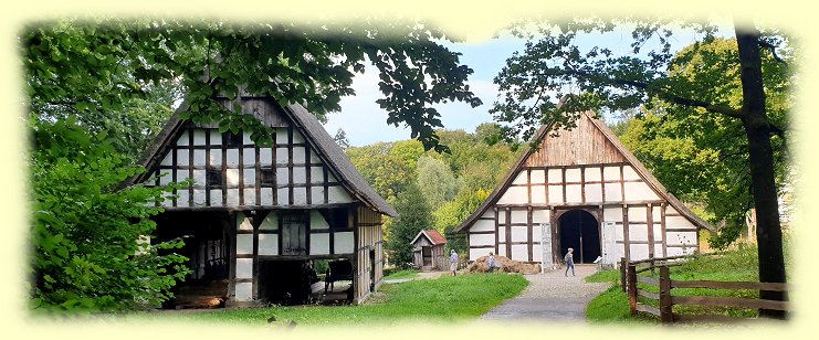 Weite Teile Ostwestfalens sind immer noch bäuerlich geprägt. Einen Einblick in die traditionellen ländlichen Wohn- und Wirtschaftsformen der Region von etwa 1500 bis heute gibt ein Besuch im Detmolder Freilichtmuseum. Genau 50 Jahre ist es her, dass dieses Museum erstmals seine Tore öffnete. Vor 26 Jahren sind wir zum ersten Mal in das ländliche Leben unserer Ur-Ur-Urgroßeltern eingetaucht. Bei unserem heutigen Besuch wollen wir uns ansehen, was sich in den Jahren verändert bzw. noch hinzugekommen ist. Das größte deutsche Freilichtmuseum zeigt uns heute auf mehr als 90 Hektar inmitten von Feldern, Wiesen und Weiden 11 Kulturlandschaften und rund 120 Fachwerkgebäude mit historischen Einrichtungen aus 500 Jahren westfälischer Alltagskultur. Das Museum hat bis heute rund 300.000 Objekte zur Geschichte der Menschen (Alltagsgegenstände) gesammelt und die Gebäude wurden mit großem Aufwand nach Detmold versetzt.