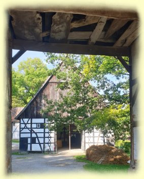 Nach diesem Abstecher in die 1960er Jahre, an die wir uns noch gut erinnern können, geht unser Spaziergang auf dem Gelände weiter an Fachwerk-Gebäuden aus dem 18. und 19. Jahrhundert vorbei.