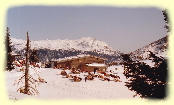 Danach geht es auf dem idyllischen Höhenkurweg bis zur Almhütte in der Schlegelmulde. Unter den Füßen knistert und glitzert der Schnee, und oben am blauen Himmel strahl fröhlich die Sonne. Auf der Bergalm erwartet uns eine leckere Brotzeit und anschließend genießen wir die wohltuende Entspannung in der Wintersonne. Diese Wintermärchenlandschaft ist einfach ein Genuss.