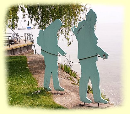 Die Partnerfigur dazu steht auf der Schweizer Seeseite in Altnau. So wie der zugefrorene See Hagnau und Altnau damals verbunden hat, stehen die beiden Skulpturen für diese Verbindung.