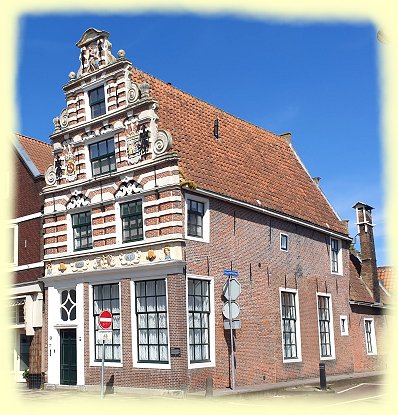 Nach dem Drommedaris ist das Gebäude auf der Westerstraat 158 mit seiner reichlich verzierten Fassade sicherlich das am meisten fotografierte Gebäude in Enkhuizen. Die schöne Fassade zeigt neben der Kartusche mit der Jahreszahl 1617 die Wappen von Oranien und Westfriesland in friesischer Sprache. Neben biblische Szenen zeigt das Relief den Löwen im Holländischen Garten. Dies war damals ein bekanntes Motiv und verwies auf den Kampf der Holländer gegen die Spanier um ihre Unabhängigkeit. Oben an der Fassade ist der Enkhuizer Stedenmaagd zu sehen. Von 1920 bis 1995 waren dort mehrere Allgemeinmediziner ansässig. Der Enkel eines dieser Hausärzte, Herr Corts, kaufte das Gebäude und schenkte es einer Stiftung. Diese Stiftung hat das Erdgeschoss dem Verein Oud Enkhuizen zur Verfügung gestellt. Dieser Verein versucht, die historischen Gebäude der Stadt zu erhalten.
