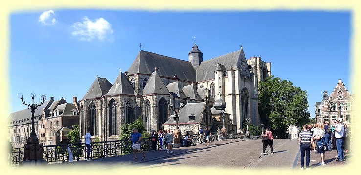 Mit der Sint-Baafskathedraal liegt ein mächtiger Bau aus Backstein und Granit vor uns, der uns schon von außen beeindruckt. Es ist eine Kathedrale der katholischen Kirche in Gent und eine der bekanntesten Sehenswürdigkeiten. Das 89 Meter hohe gotische Gebäude ist der Sitz der Diözese Gent und ist nach dem Heiligen Bavo von Gent benannt. Diese Kathedrale beherbergt zahlreiche Kunstwerke, die wir uns aufgrund des kurzen Aufenthalts in der Stadt leider nicht ansehen konnten.