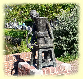 Schoonhoven ist eine romantische, typisch holländische Kleinstadt. Wegen der durchaus überschaubaren, aber sehr schönen Altstadt kommen viele Touristen hier her. Auf der Veerstraat stehen gleich zwei Skulpturen von dem Bildhauer und Restaurator Jan van Ipenburg unter dem Titel „der faule Lehrling und der Farbmischer“. Die Skulptur Farbmischer zeigt eine Topfmühle, das erste handbetriebene mechanische Werkzeug für die Herstellung von Farben. Die Ausgangsstoffe wurden direkt von den Erzeugern oder von Apotheken bezogen, die eigentliche Farbenherstellung besorgten die Maler selbst.