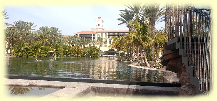 Das westlich des Leuchtturms entstandene Ferienresort ist ein architektonisches Highlight. Wo sich in den sechziger Jahren rund um den Leuchtturm von Maspalomas nur einige Sommerhäuschen gruppierten, ist heute eine gigantische Ferienlandschaft entstanden. In den letzten Jahrzehnten hat sich die Umgebung des Leuchtturms sehr verändert und ist seit unserem letzten Aufenthalt 2008 hier im Hotel Lopesan um einiges gewachsen.