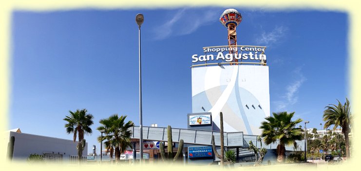 Das im Jahr 1980 eröffnete "Centro Comercial San Agustin" liegt mitten im Ort an der GC 500 und ist von unserem Hotel durch eine schön angelegte kleine Parkanlage nach ca. 1 km zu erreichen. In dem offenen Gebäudekomplex befinden sich auf mehreren Etagen Geschäfte, Bars und Restaurants. Hier hat sich in den zurückliegenden 12 Jahren vieles verändert und das gemütliche Lokal „Willis Pflaumenbaum“, geführt von einem deutschen Ehepaar, gibt es leider nicht mehr.
