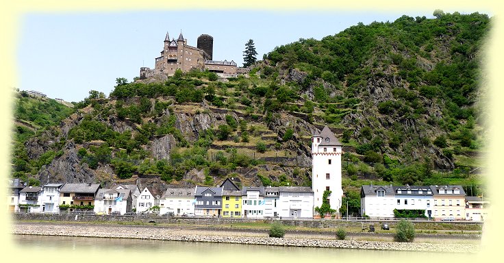 Auf den Bergwipfeln über der Stadt Goarshausen, nahe dem Loreleyfelsen, thront auf steilen Fels seit dem Jahre 1343 die Burg Katz. Die Burg fällt durch ihre ungewöhnlich kleine Grundfläche und dadurch kompakte Bauweise auf.