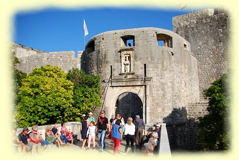 Wir haben für die Fahrt in die Altstadt wieder den Shuttlebus benutzt, der uns auf dem Brsalje Platz absetzte. Es ist ein großer Platz mit Bushaltestellen und der Tourist-Information, direkt vor dem Piletor.