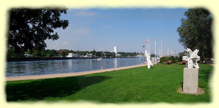 Doch nicht nur Schiffe gucken ist angesagt, denn wir bummeln über dem „Neustädter Kunst-Kilometer“. Entlang des fjordartigen Hafens an der Promenade „Jungfernstieg“ präsentieren Künstlerinnen und Künstler Skulpturen und Installationen im öffentlichen Raum der Stadt.