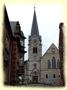 Einen ganz anderen Baustil zeigt die am 9. Mai 1970 geweihte Heilig Geist Kirche. Diese Kirche wirkt insgesamt wie der Bau einer Plastik und wir daher auch liebevoll "Sankt Beton" genannt und passt so gar nicht zu den romantischen Fachwerkhäusern der Altstadt.