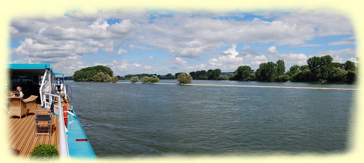 Wie sich das Wetter langsam zu einem Hochsommertag gewandelt hat, so verändert sich nun auch die Landschaft. Inselrhein oder Rheinauen ist die Bezeichnung eines Rhein-Abschnitts mit einer Reihe von Inseln zwischen Bingen und Mainz.