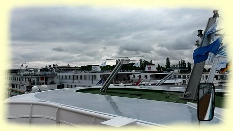 Welch ein Betrieb auf dem Wasser heute herrscht, merken wir, als sich unser Schiff vorbei an unzähligen Flusskreuzfahrtschiffen zum Anleger Nr. 5 schiebt.
