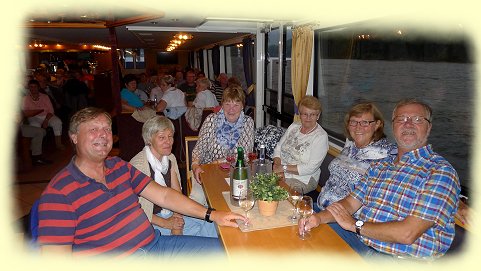 Pünktlich um 18.00 Uhr werden wir von unserer Crew wieder kulinarisch verwöhnt und um 19.45 Uhr heißt es dann, umsteigen auf die Ms Fortuna. Auch auf diesem Schiff heißt es für uns alle, Getränke bis 23.00 Uhr „All inklusiv“. In vorher schon abgesprochenen Gruppen werden die Tische besetzt, sodass sofort eine absolut gute Stimmung herrscht.