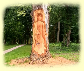 Manchmal müssen alte Bäume gefällt werden. Aber eigentlich ist es doch schade um so einen ehrwürdigen Vertreter der Natur. Ist der Baum erstmal weg, bleibt doch immer noch das Problem mit dem Baumstumpf. Ein Künstler mit Ketten/Motorsäge hat in unmittelbarer Nähe des Denkmals ein wahres Kunstwerk aus einem alten Baumstumpf geschaffen. Schade, dass man nirgendwo etwas über den Künstler und seine erschaffene Baumskulptur finden konnte.