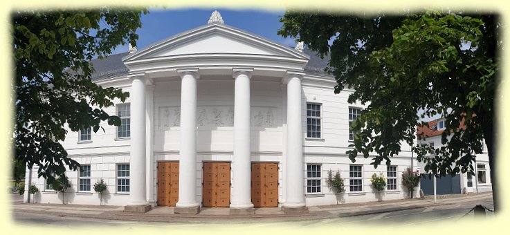 Das Theater, welches mit der Schmalseite am Marktplatz liegt, wurde 1819 bis 1820 erbaut. Es sollte den Gästen des Fürsten zur kulturellen Unterhaltung dienen. Die Hauptfront zeigt zum Schloss. Den Mittelteil des Gebäudes schmückt ein viersäuliger Portikus. 1992 bis 1998 wurde das gesamte Theater aufwändig und originalgetrau restauriert. Der Zuschauerraum besteht aus Parkett und zwei Rängen mit insgesamt 256 Sitzplätzen.