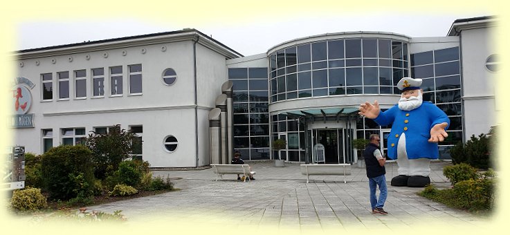 Zum Schluss unserer Tour gibt es noch etwas zu Essen in einem Imbiss auf einem Schiff direkt im Hafen am Selliner See. Mit viel Liebe zum Detail ist das Räucherschiff gestaltet. Es bietet genügend Sitzplätze auf dem Schiff sowie an Land in Form von Strandkörben direkt am Wasser. |