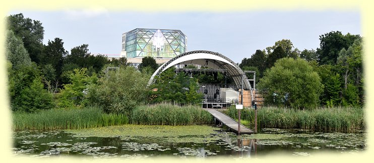 Im Großen Saal finden über 800 Zuschauer Platz. Zwei Foyers bieten genügend Raum für Bankette, Tagungen, Empfänge oder Tanzveranstaltungen. Direkt am Ufer der Alten Oder finden hier außerdem von Mai bis September die traditionellen Odertal-Festspiele auf der Freilichtbühne statt, die wir vom Wasser bereits gesehen haben.